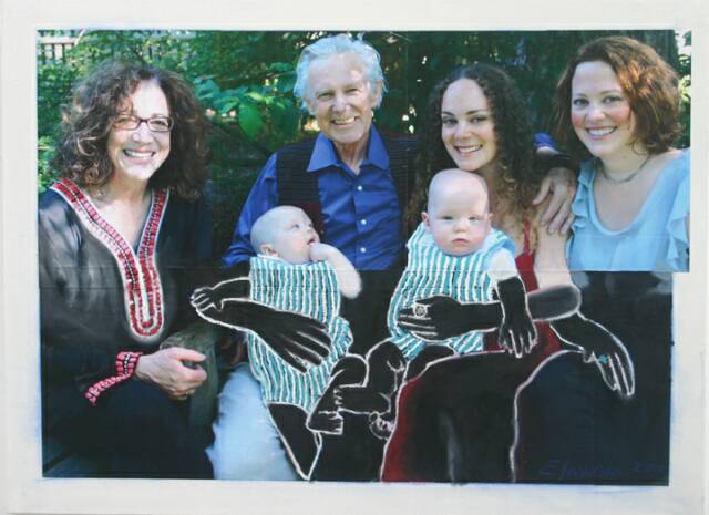 Kim Kettler (b. ), artist, with children Isadora, Logan, and Clementine Dunne